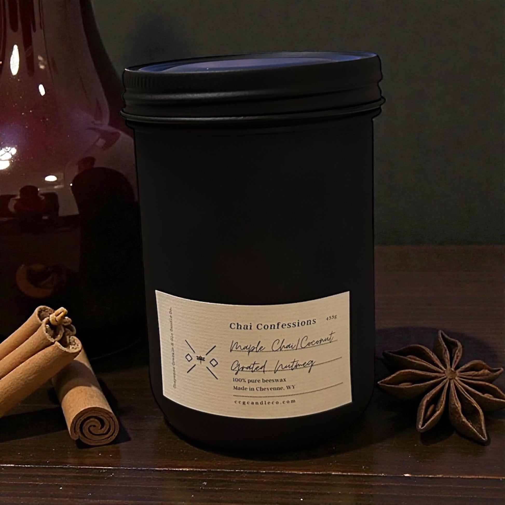 Chai Confessions is a luxurious fall favorite, satisfying your senses with its tantalizing scent of maple chai, creamy coconut, and grated nutmeg. It is made of 100% pure beeswax accompanied with a crackling wick, ensuring a long lasting aroma and extended burn.