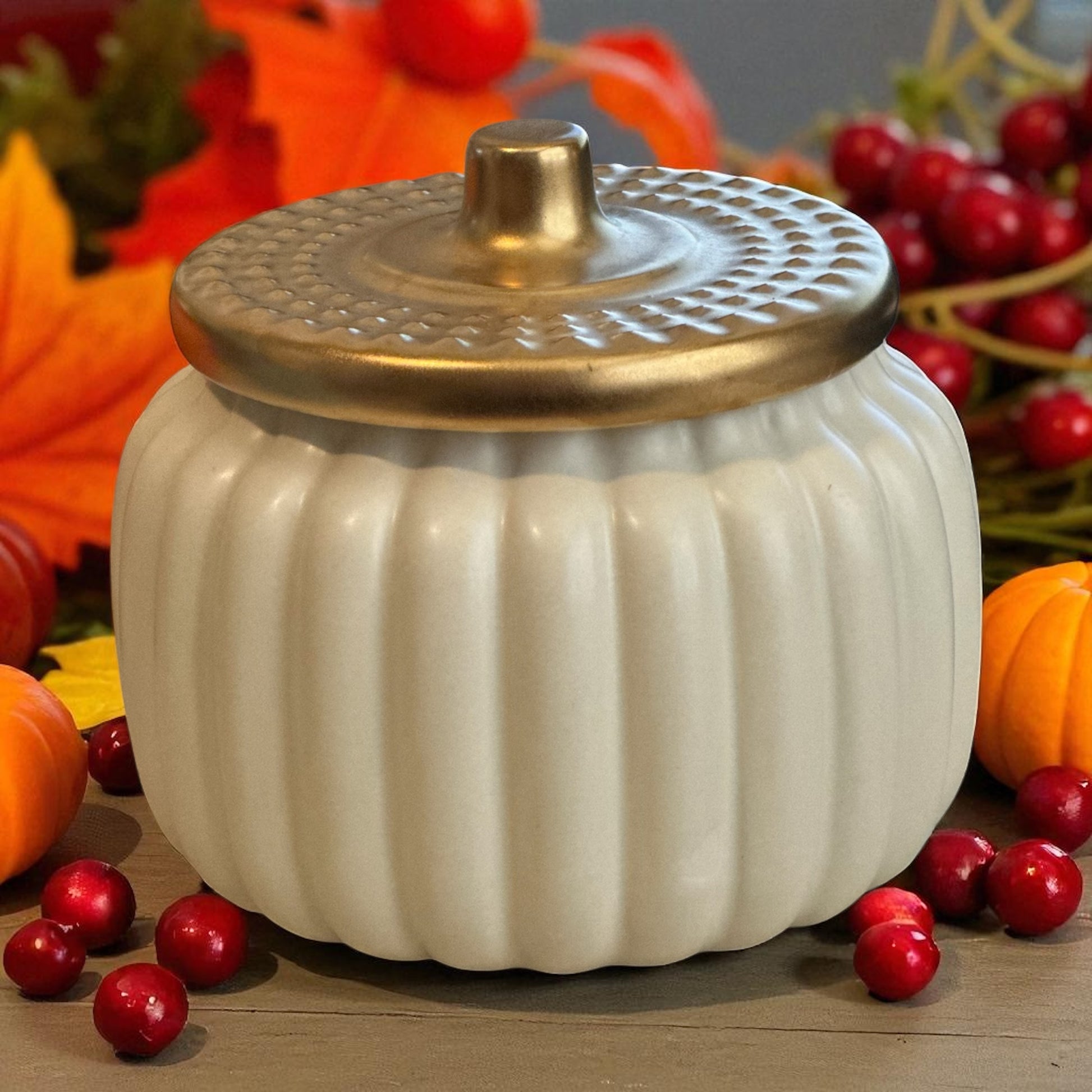Capture the essence of autumn with the limited edition Cranberry Tart three-wick pumpkin vessel. Designed to fill your space with the rich, inviting warmth characteristic of the season, this candle combines a timeless design with a comforting ambiance, making it an essential addition to your Fall décor.